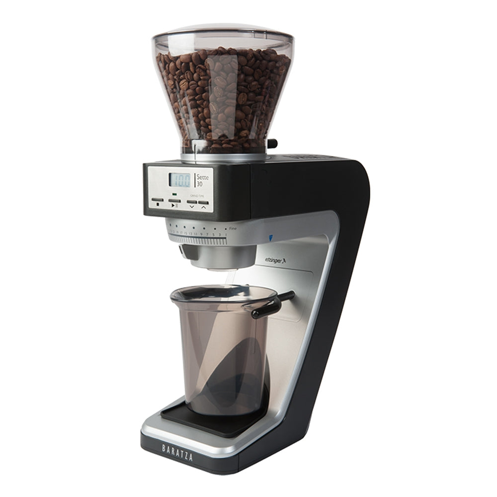 Burrs: Manufactured by Etzinger in Liechtenstein, the Sette 30 is built with 40mm conical AP burrs, which are designed to give a grind profile that is exceptional for espresso and good for brew methods requiring a finer grind (e.g. AeroPress or Hario V60).