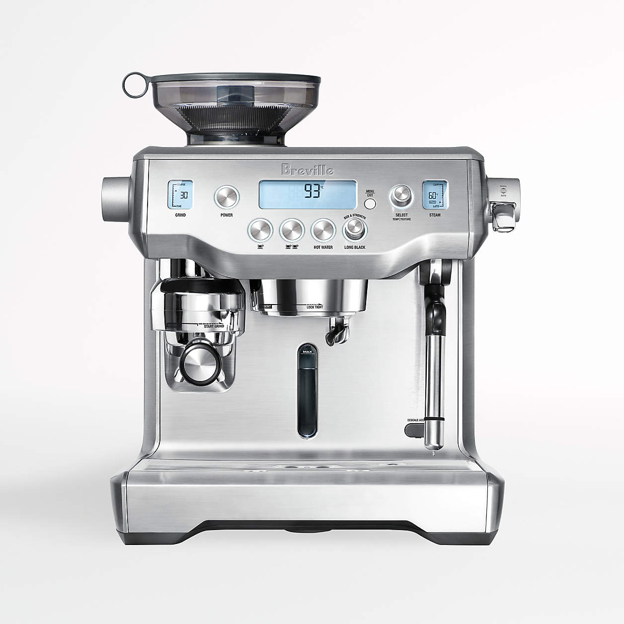 Loading... Please wait...The Oracle crafts third-wave, cafe-quality espresso drinks in moments, right at home. The conical burr grinder starts your coffee drinks off right, automatically grinding, dosing and tamping grounds directly into the stainless steel portafilter. Choose manual or automatic espresso options and the pre-infusion gradually increases water pressure to gently expand the espresso grounds. While your espresso is brewing, select your preferred milk texture and temperature for a dreamy macchiato, cappuccino or latte.