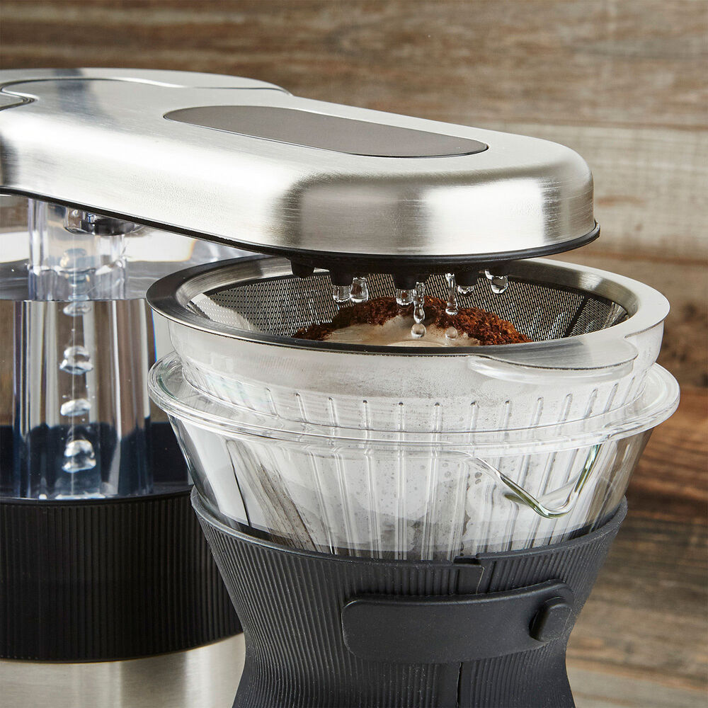 Brew a carafe of flavorful pour-over coffee at home without skimping on quality or taste. Thoughtfully designed with a shower head, this coffee maker utilizes pulse brewing to evenly water your coffee bed and achieve the perfect bloom on its own. Brew without a paper filter thanks to the permanent fine-mesh filter that allows essential coffee oils to pass through, resulting in eight cups of smooth, full-bodied coffee without any fuss.
