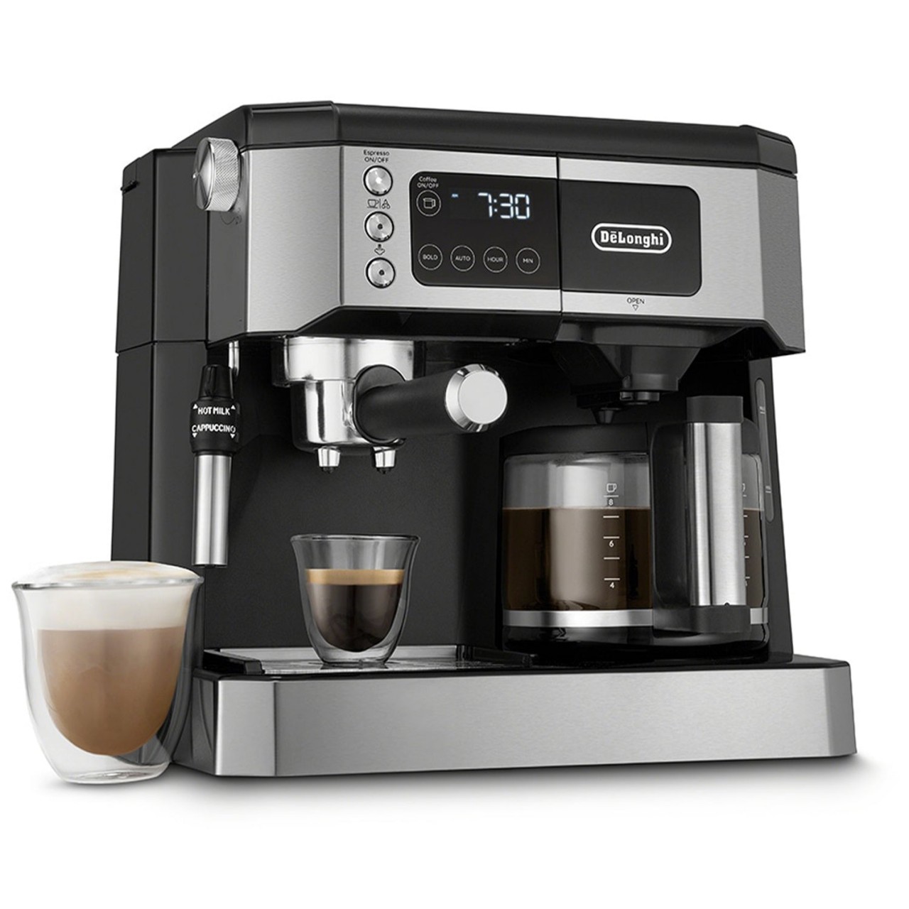- A machine that multi-tasks: enjoy espresso, coffee, and lattes.