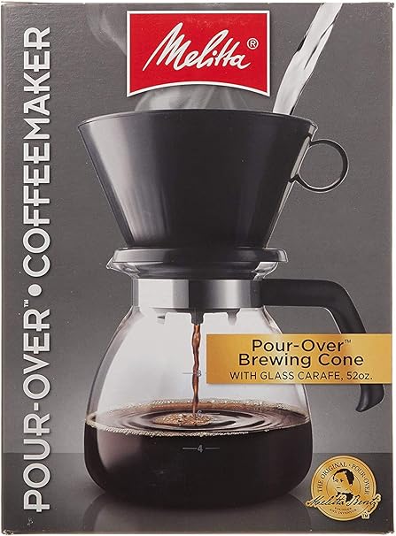 Loading... Please wait...he Melitta 52 oz. Pour-Over Coffee Brewer with Glass Carafe is a manual coffee maker that stays true to the company's century-old tradition of brewing rich, flavorful coffee through a simple, gourmet pour-over method . It is an ideal choice for home, office, or even college, and works perfectly as a second pot for decaf or a different coffee flavor .