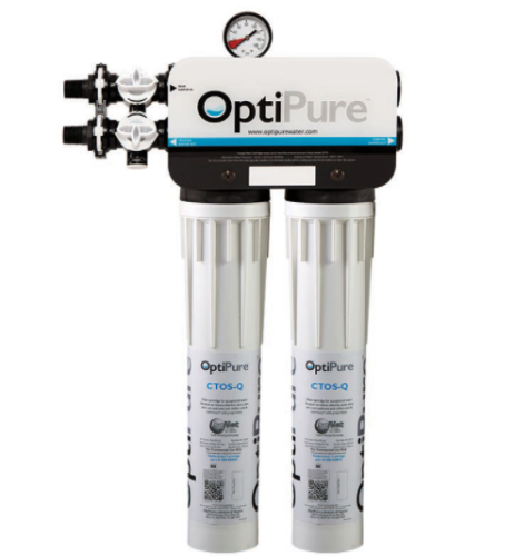 The Pentair QTI-2 is a dual-cartridge water treatment system with parallel-plumbed 15″ Qwik-Twist cartridges that reduces sediment down to 0.5-microns, and reduces chlorine, taste & odor at a flow rate of 4.5 gpm for 45,000-gallons. The system includes IsoNet® , OptiPure’s patented scale inhibiting technology, which delivers consistent protection against the precipitation and accumulation of scale and provides a protective barrier to help guard against corrosion |