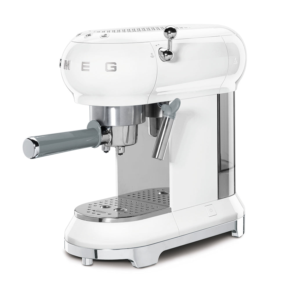 Loading... Please wait...Inspired by 50s style design, Smeg's Espresso Coffee Machine is designed for both style and performance. It can be used with both ground coffee and ESE pods, allowing Italian coffee lovers to choose their favourite roast and take home that real espresso bar taste and aroma. High quality performance is guaranteed by the sophisticated technology of the Thermoblock heating system, resulting in faster switch-on time and a precise control of water temperature for brewing, steam and hot water.